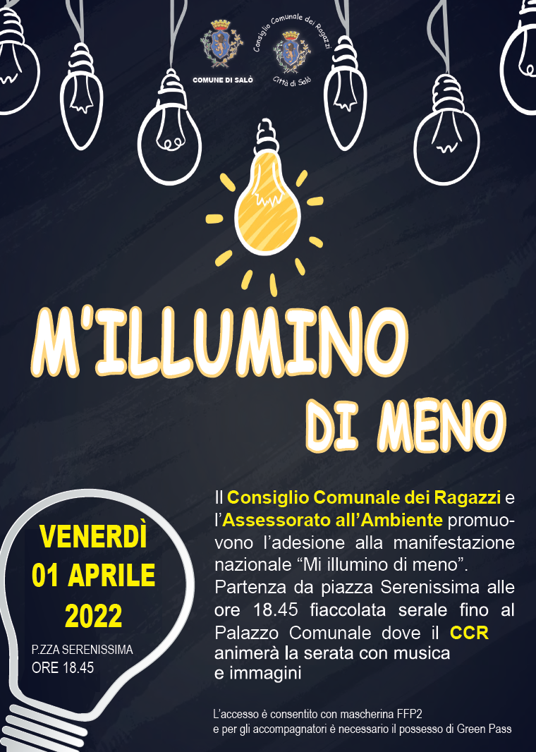 Il Consiglio Comunale dei Ragazzi e l'Assessorato all'Ambiente promuovono l'adesione alla manifestazione nazionale "Mi illumino di meno".